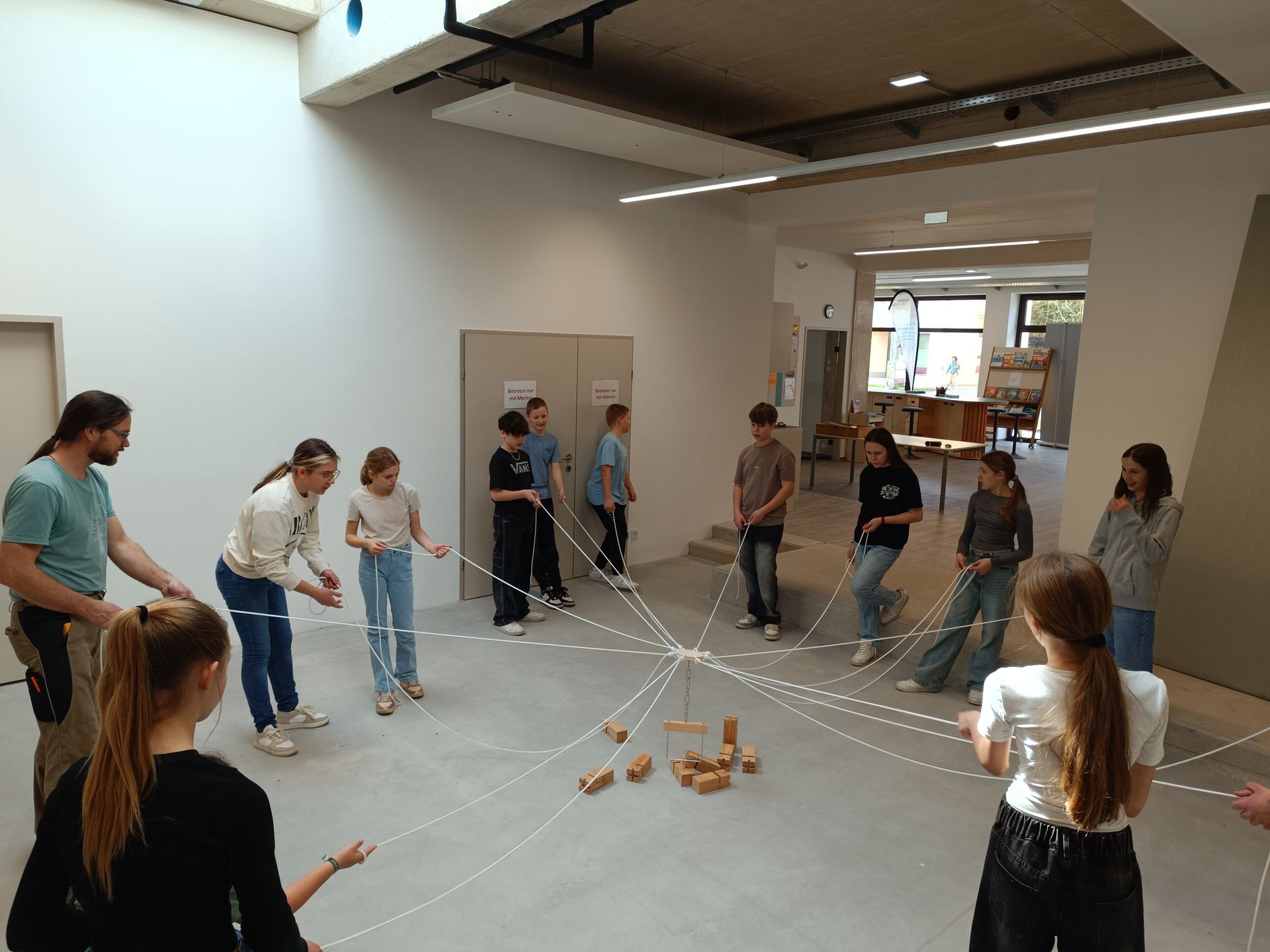 Die 2a-Klasse der Mittelschule Straden ist heuer Teil des Pilotprojekts der Stiftung für Wirtschaftsbildung. Im Zuge der „Marktwoche“ konnten sich die Schülerinnen und Schüler in Gruppen organisieren, eigene Marktideen entwickeln und so die Grundlagen der Wirtschaft hautnah erfahren. Dabei erarbeiteten sie an zwei Tagen mit ihrem Klassenvorstand Philipp Haugeneder und Projektbegleiter Christoph Monschein wirtschaftliche Grundlagen und erste eigene Ideen. Nach gemeinsamer Verständigung auf den Baustoff Holz lernten sie an einem weiteren Tag in Begleitung von Herrn Josef Dreisiebner das Ökosystem Wald kennen und besuchten das Sägewerk Ritz in Hof bei Straden. Abschließend wurde in der Werkstatt „Technik für Kinder“ in Feldbach unter Leitung von Herrn Michael Fröhlich gemeinsam ein Fröbelturm-Spiel aus Holz hergestellt. Das Austesten des fertigen Produktes geschah im Team und machte großen Spaß - wie auch das Eintauchen in die Abläufe der Wirtschaft, das den Kindern mit der gelungenen Marktwoche ermöglicht wurde.