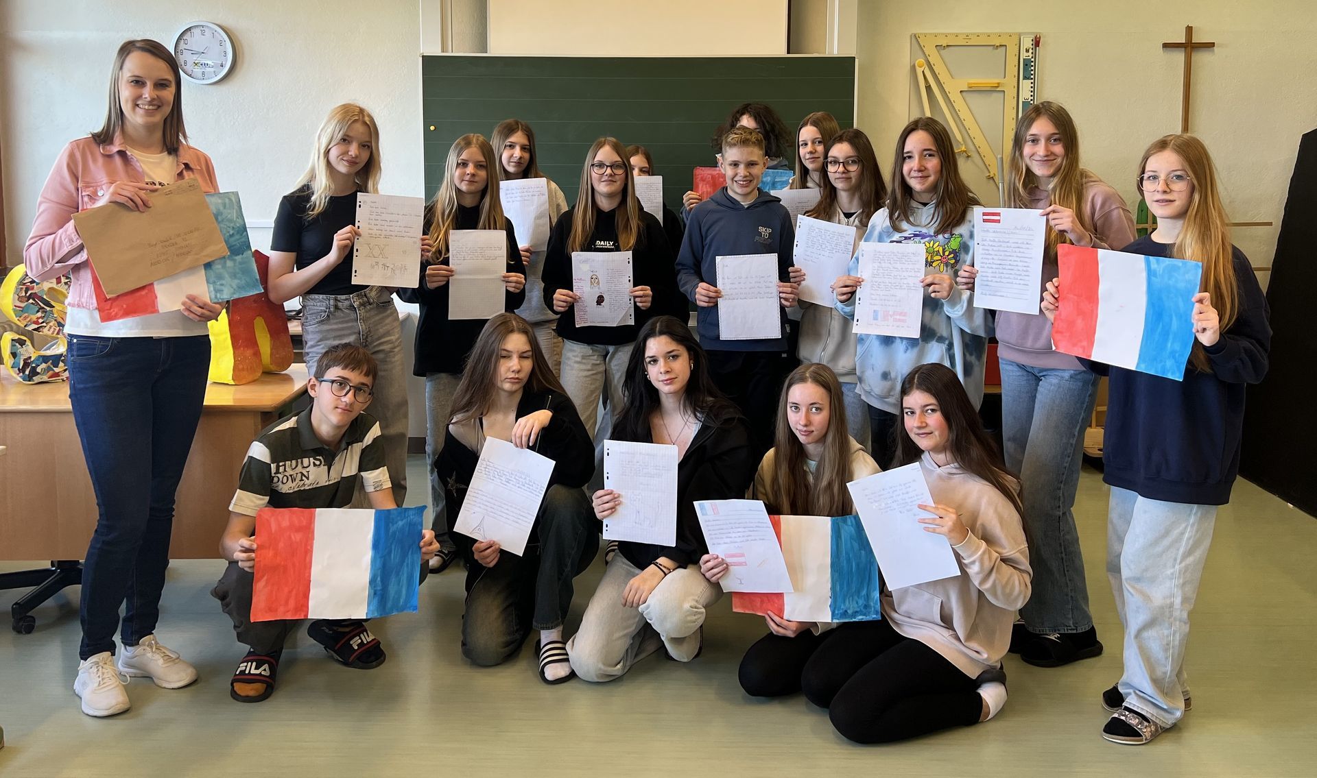 In den jeweiligen Fremdsprachen tauschten sich die Lernenden über ihre Hobbys, Familie, Haustiere und das Schulleben aus. Die Freude über die handgeschriebenen und mit viel Sorgfalt gefertigten Briefe war auf beiden Seiten groß. Diese Art der Begegnung über Ländergrenzen hinweg war gewiss eine bereichernde und wertvolle Erfahrung für alle. Merci beaucoup an die französischen Brieffreunde und an ihre Lehrerin Madame Brittinger für den gelungenen Austausch!