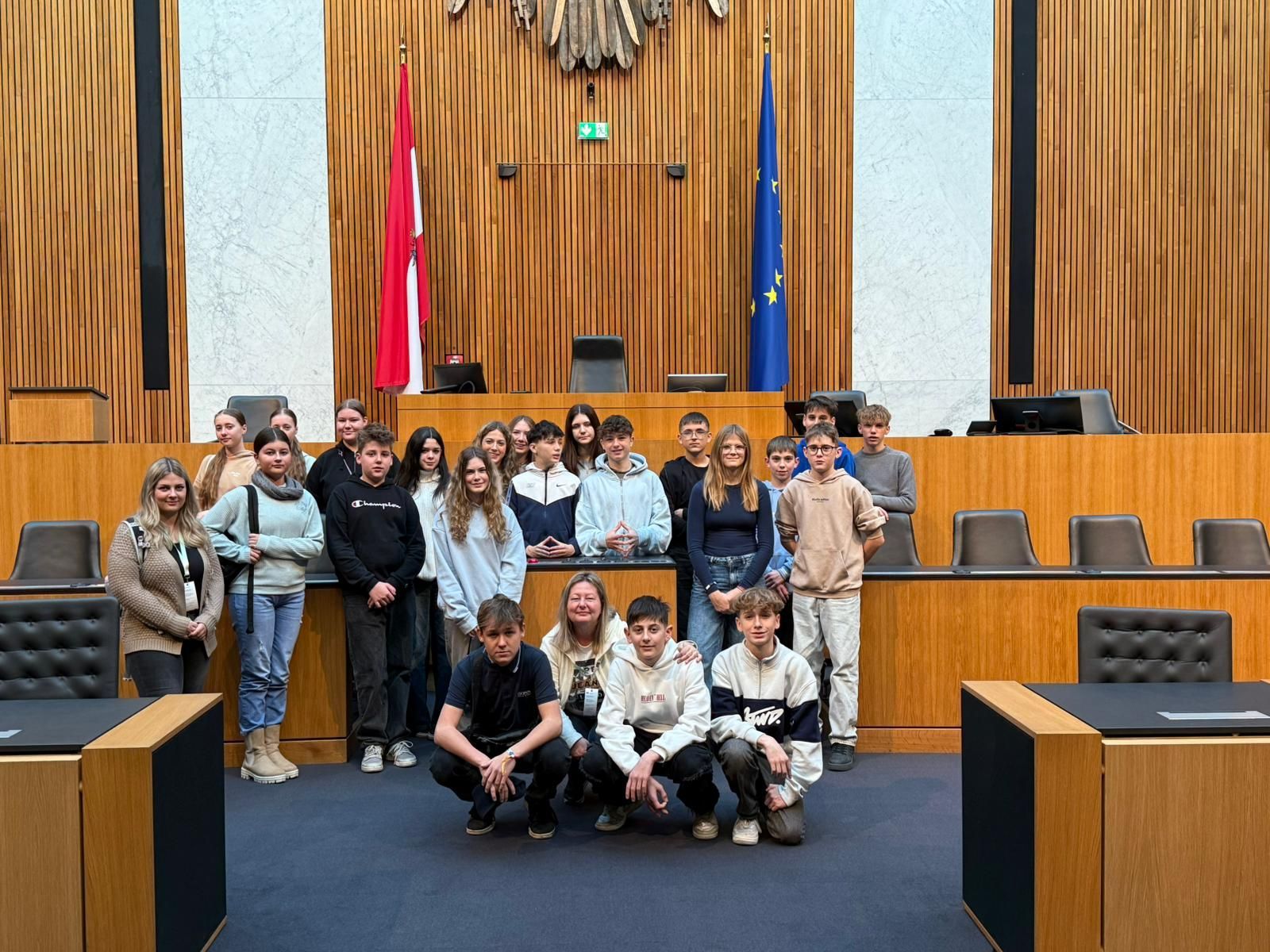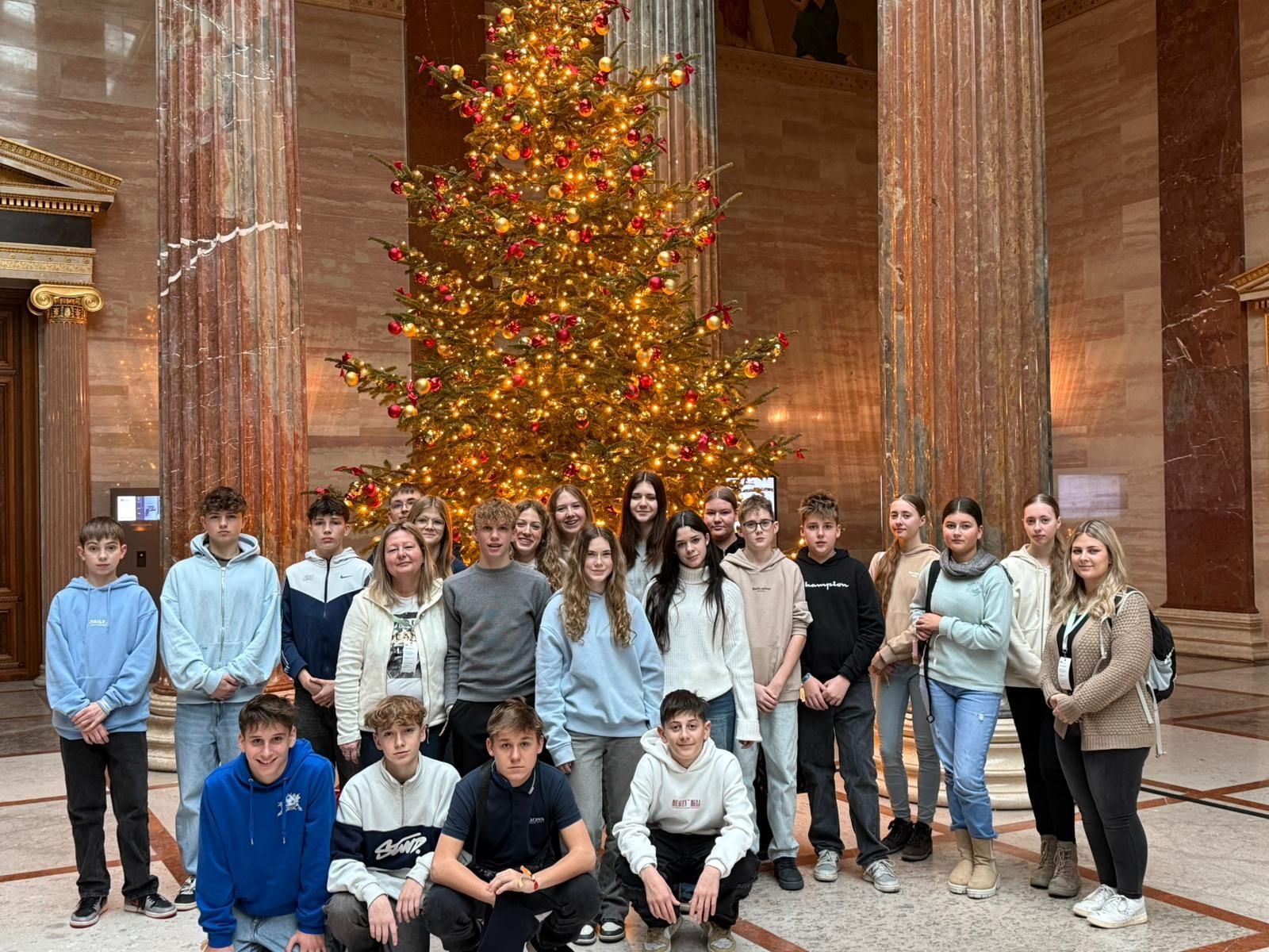 Vom 15. bis 20. Dezember entdeckten die Schülerinnen und Schüler der vierten Klasse die Bundeshauptstadt, die so vieles zu bieten hat. Eine Führung durch die Schatzkammer und die Kaisergruft nahm die Jugendlichen mit auf eine Reise durch die österreichische und europäische Geschichte. Das Zentrum mit dem berühmtesten Wahrzeichen Wiens, dem Stephansdom, wurde erkundet. Einen Blick in den Sternenhimmel lieferte das Planetarium, das sich im Wiener Prater befindet. Ein Besuch des Flughafens, des Technischen Museums und der imposanten Schlösser Schönbrunn und Belvedere standen ebenso am Programm wie eine Tour durch das Vienna International Center. Besonders beeindruckte „Rock me Amadeus“, das Falco-Musical im Ronacher. Nach einem Rundgang durch das Parlamentsgebäude traten am Freitag alle Teilnehmerinnen und Teilnehmer die Heimreise an.